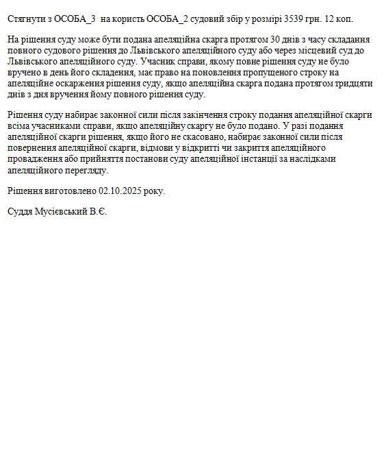 Стягнути з ОСОБА_3 на користь ОСОБА_2 судовий збір у розмірі 3539 грн. 12 коп.